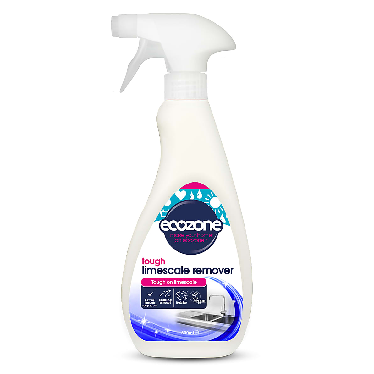 Der hochwirksame Kalkentferner von Ecozone wurde speziell entwickelt, um jedes Mal eine gründliche Reinigung der schwer zu entfernenden Kalkablagerungen zu ermöglichen, die sich aufgrund von hartem Wasser auf den Oberflächen rund um das Haus angesammelt haben.