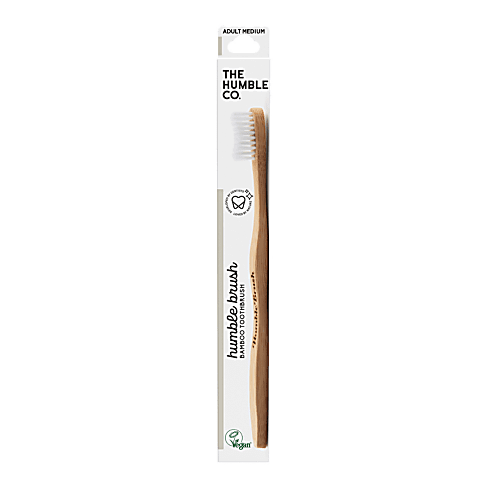 Die Bambuszahnbürste mit mittleren, BPA-freien Borsten von The Humble Co. tut, was sie soll: Ihre Zähne gründlich reinigen. Kein Plastik. Kein Schnickschnack. Einfach eine Zahnbürste, die Ihren Mund sauber macht und ein gutes Gefühl gibt. Der Griff besteht aus Bambus und ist mit einer natürlichen Wachsbeschichtung veredelt. Die Borsten bestehen aus BPA-freiem Nylon mit 65 % pflanzlichen Materialien aus Rizinusbohnen.