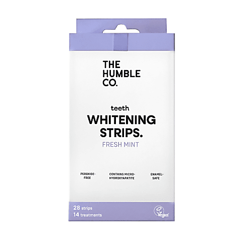 Die Whitening Strips Mint von The Humble Co. tun genau das, was sie sollen: die Zähne allmählich aufhellen. Die Strips bestehen aus einer peroxidefreien, schonenden Formel, die den Zahnschmelz schützt und die Zähne schrittweise aufhellt. Sie wurden auf sichtbare Whitening-Ergebnisse getestet, von The Vegan Society zertifiziert und sind frei von chemischen Zusätzen.